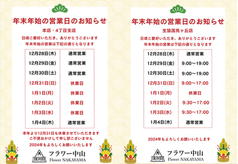 この度、フラワー中山【本店】にて定休日を設けることとなりました。
