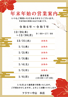 いつもフラワー中山をご愛顧いただき、誠にありがとうございます。