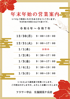 (フラワー中山生協国見ケ丘店の定休日はございません。)